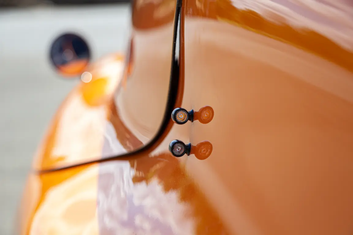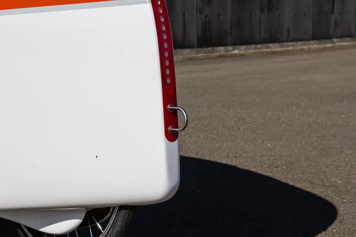Modèle très sportif, le plus léger du commerce, toit rigide, commandes latérales, Peinture métallisée orange et blanche, Freins 90mm, poignée arrière, double rétroviseurs avec cônes, Pédalier double plateau, cassette 11-40, Siege ergo L, éclairage haut de gamme Lupine, clignotants et klaxon.