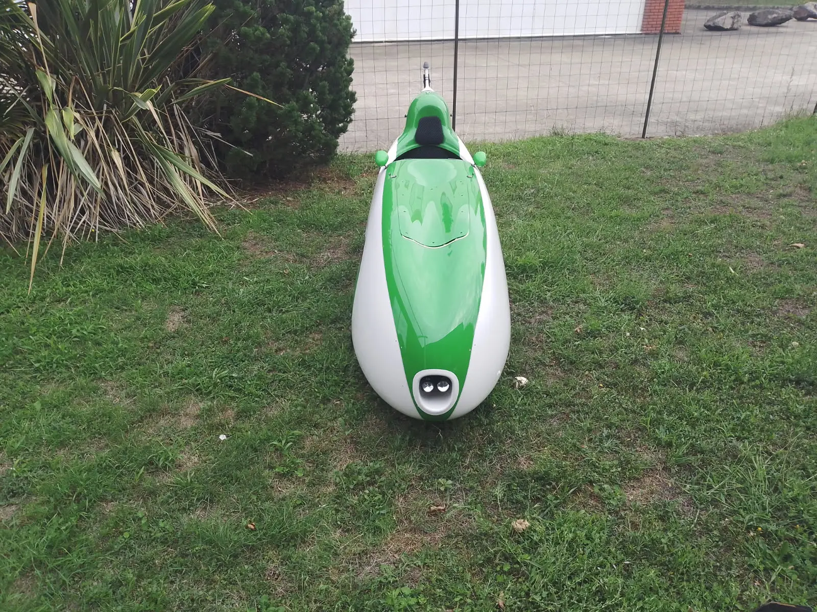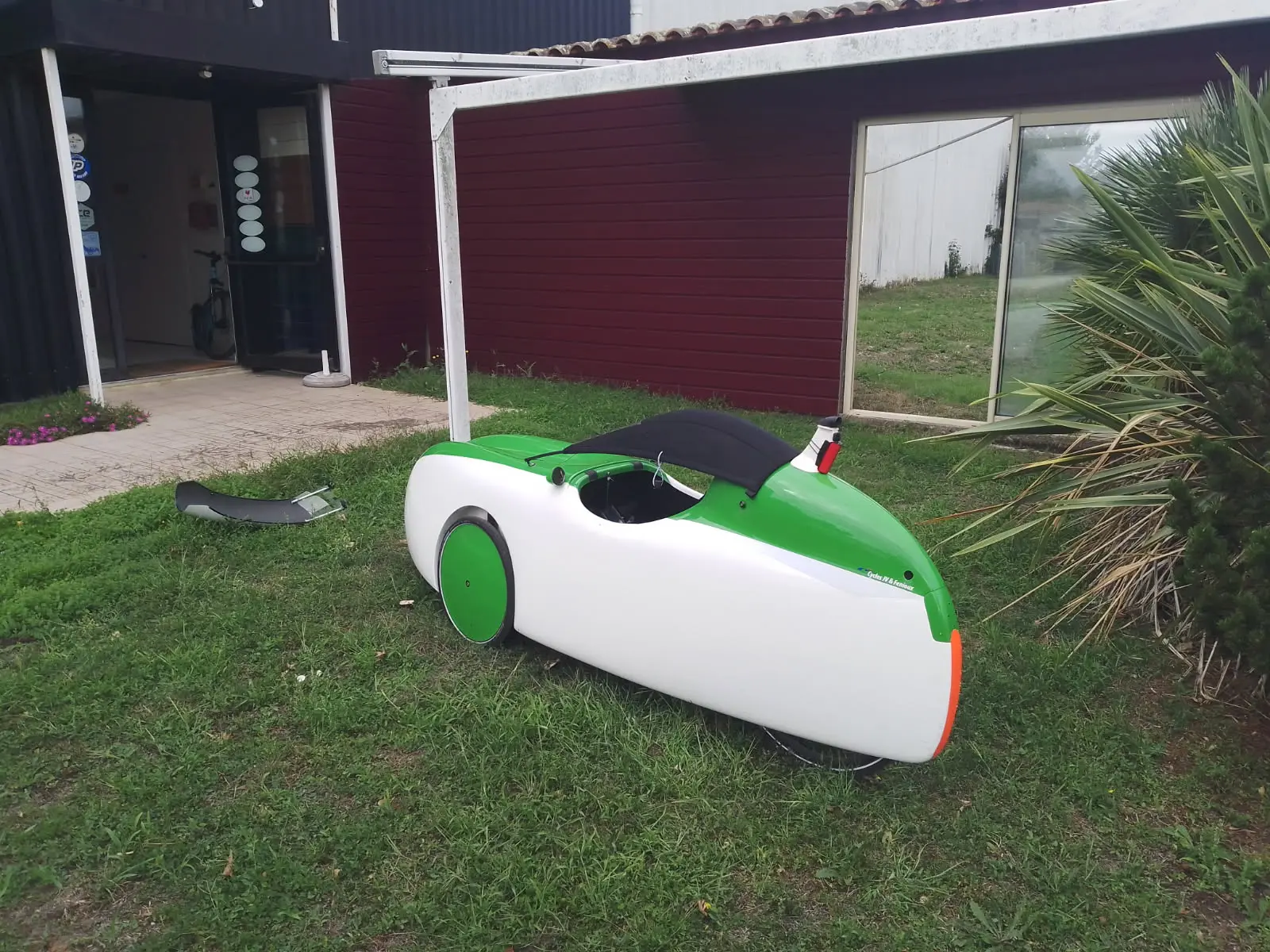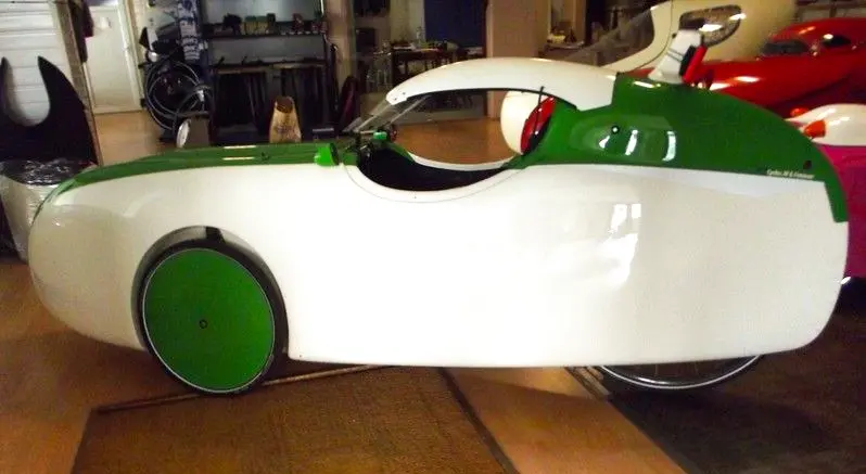 Celui-ci est équipé d'une assistance sur le pédalier, cela écarte limite la taille pilote à 1m70 mais il est toujours possible de remettre le vélomobile en configuration musculaire.