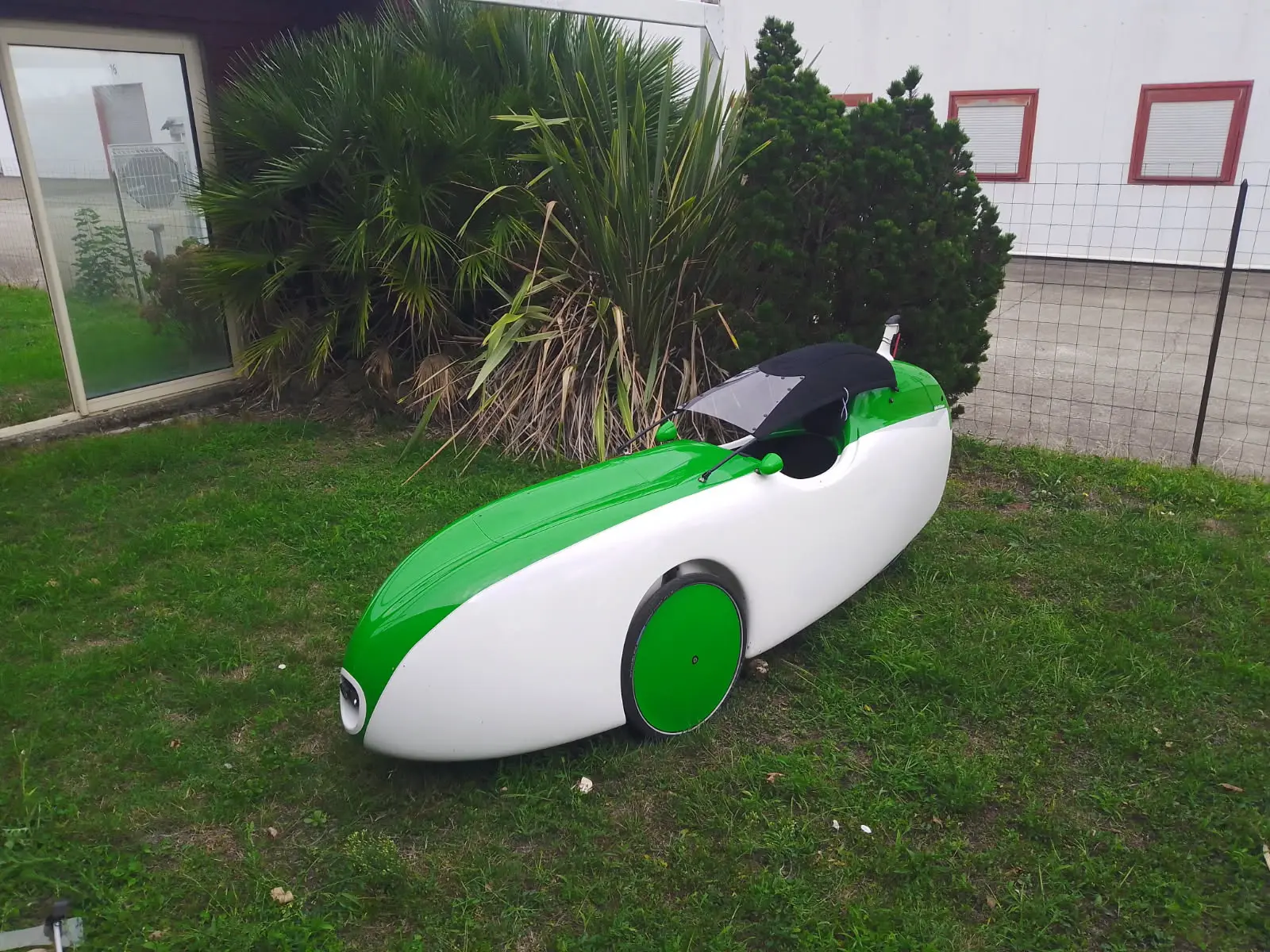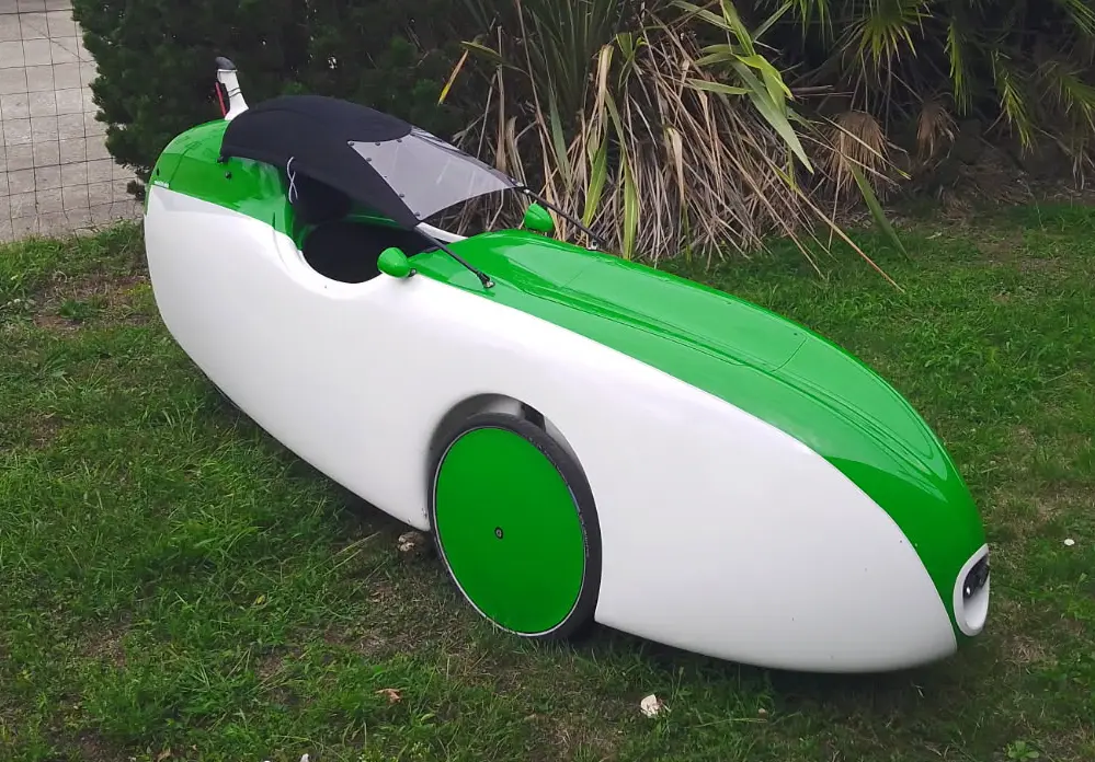 Celui-ci est équipé d'une assistance sur le pédalier, cela écarte limite la taille pilote à 1m70 mais il est toujours possible de remettre le vélomobile en configuration musculaire.