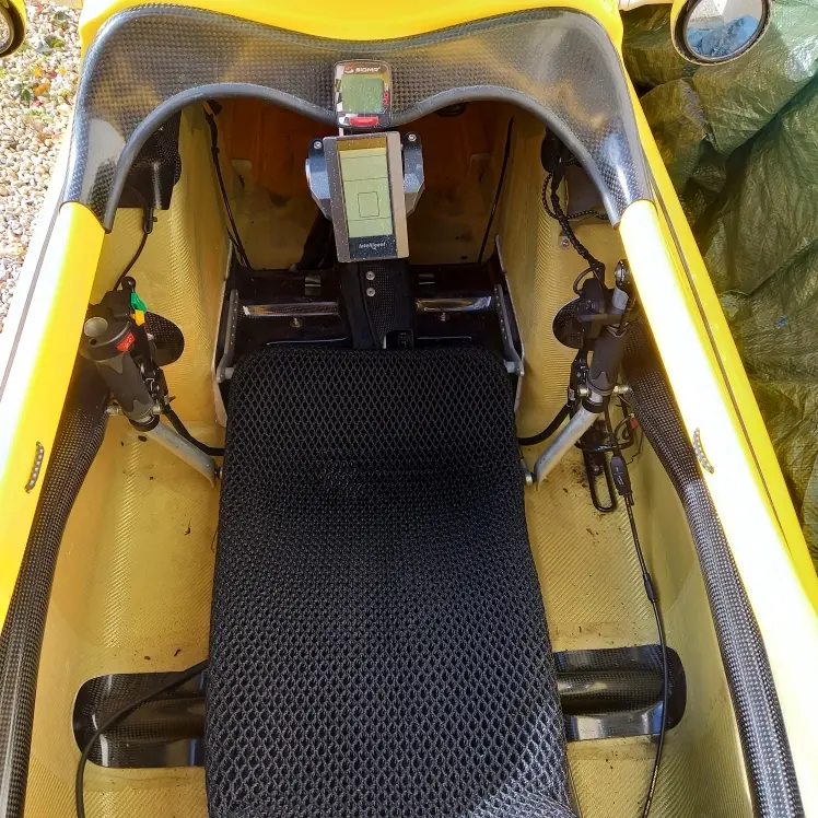 Le Waw est un vélomobile polyvalent et fiable, idéal pour les personnes cherchant la sportivité et la sécurité. Il s'agit ici d'un Waw confor avec assistance électrique sur le pédalier. cela donne une autonomie entre 150 et 200 km selon le relief et celui qui pédale !